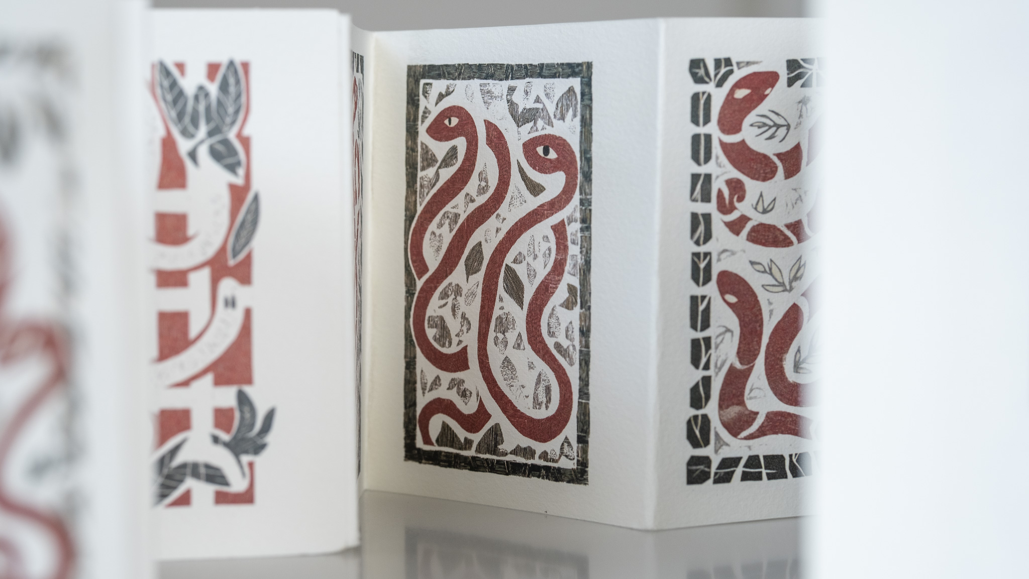 A limited series of 25 snake prints, each variation tracing a different gesture of movement and renewal. Printed as an A3 accordion fold on 200gsm Fabriano Acquarello, cold-pressed.